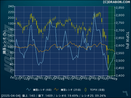 騰落レシオ(25日):89.24% (-10.42)
