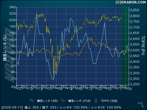 騰落レシオ(6日):102.99% (+6.10)