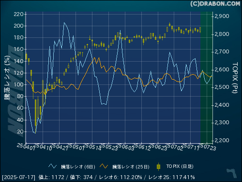 騰落レシオ(25日):117.41% (+7.14)