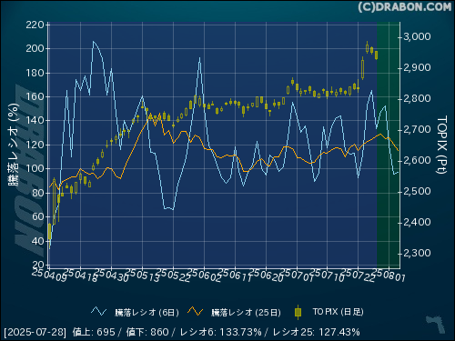 騰落レシオ(6日):133.73% (-31.73)