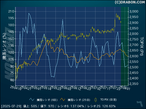 騰落レシオ(6日):137.04% (+3.31)