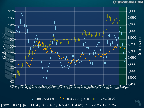 騰落レシオ(6日):164.62% (+29.88)