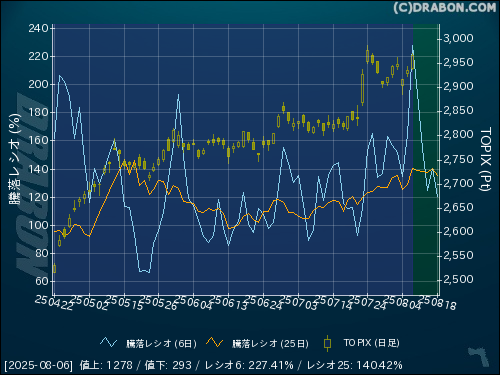 騰落レシオ(6日):227.41% (+62.78)