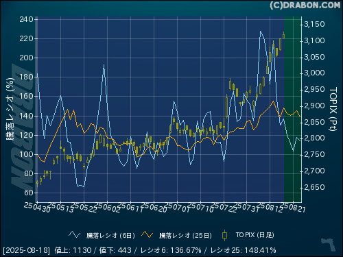 騰落レシオ(25日):148.41% (+9.13)