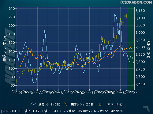騰落レシオ(25日):146.95% (-1.46)