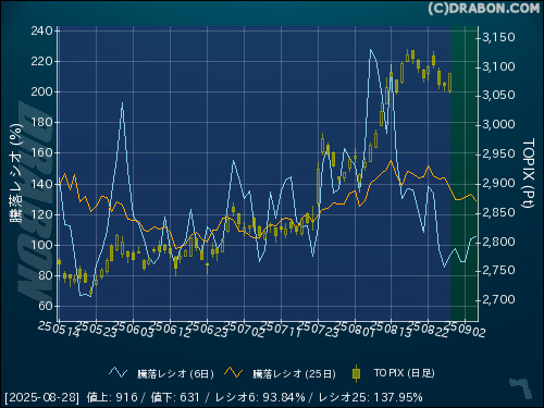 騰落レシオ(25日):137.95% (-6.30)