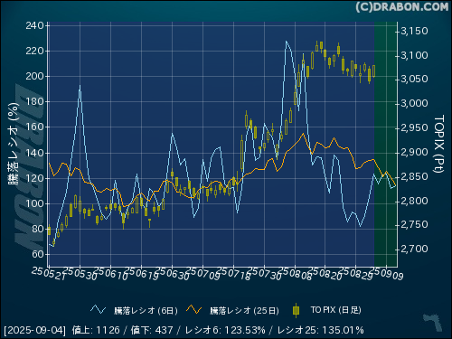 騰落レシオ(25日):135.01% (+0.69)