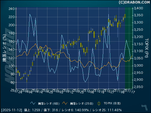 騰落レシオ(6日):140.99% (+22.63)