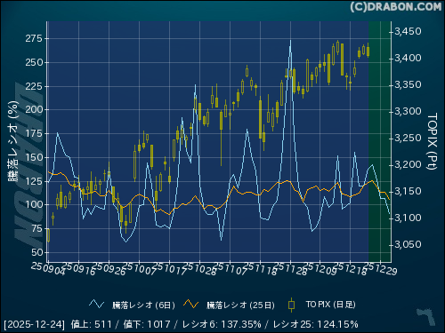 騰落レシオ(25日):124.15% (+4.33)