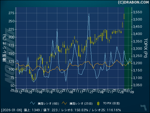 騰落レシオ(25日):116.16% (+4.25)