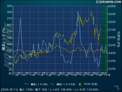 騰落レシオ(25日):129.98% (+6.84)