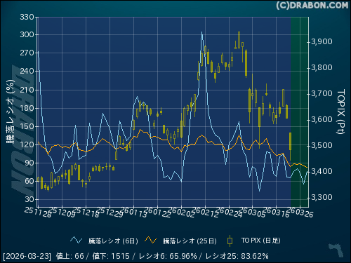 騰落レシオ(6日):65.96% (-1.20)