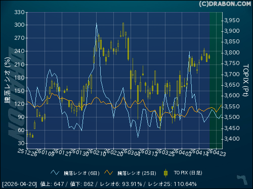 騰落レシオ(6日):93.91% (+7.24)
