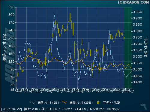 騰落レシオ(6日):71.47% (-24.42)