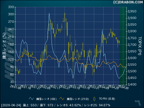騰落レシオ(6日):43.62% (-8.52)