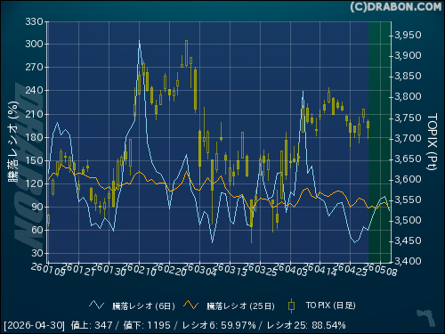 騰落レシオ(25日):88.54% (-10.81)