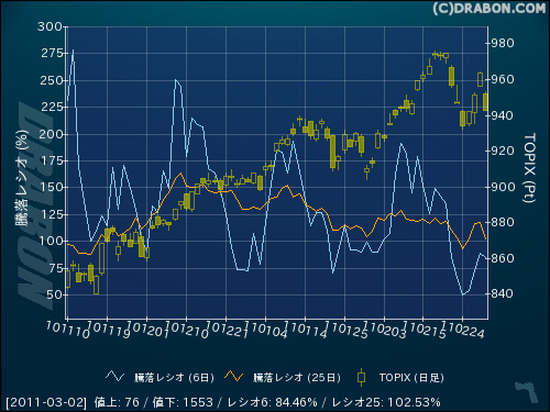 市況(東証1部) (2011/03/02)