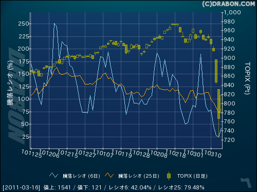 市況(東証1部) (2011/03/16)