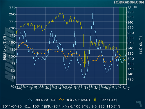 騰落レシオ(6日):100.84% (+34.36)