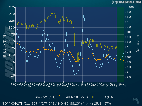 騰落レシオ(25日):84.67% (+1.54)
