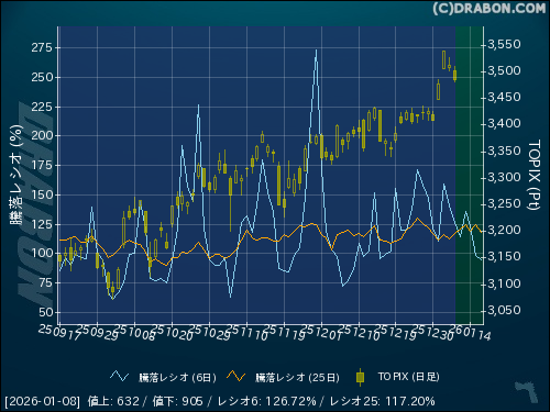騰落レシオ(25日):117.20% (+4.16)