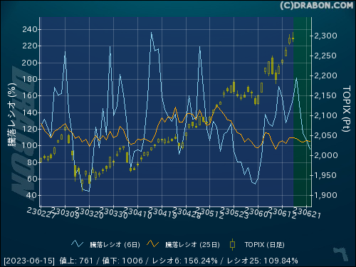騰落レシオ(6日):156.24% (+15.10)