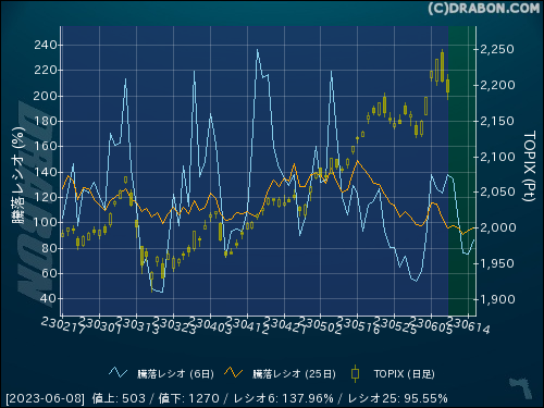 騰落レシオ(25日):95.55% (-7.66)
