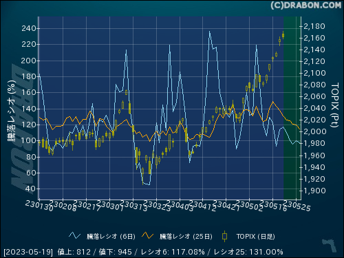 騰落レシオ(6日):117.08% (+3.25)