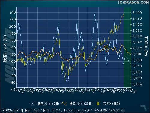 騰落レシオ(25日):143.31% (-5.54)