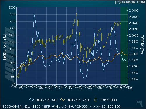 騰落レシオ(25日):133.10% (-2.51)